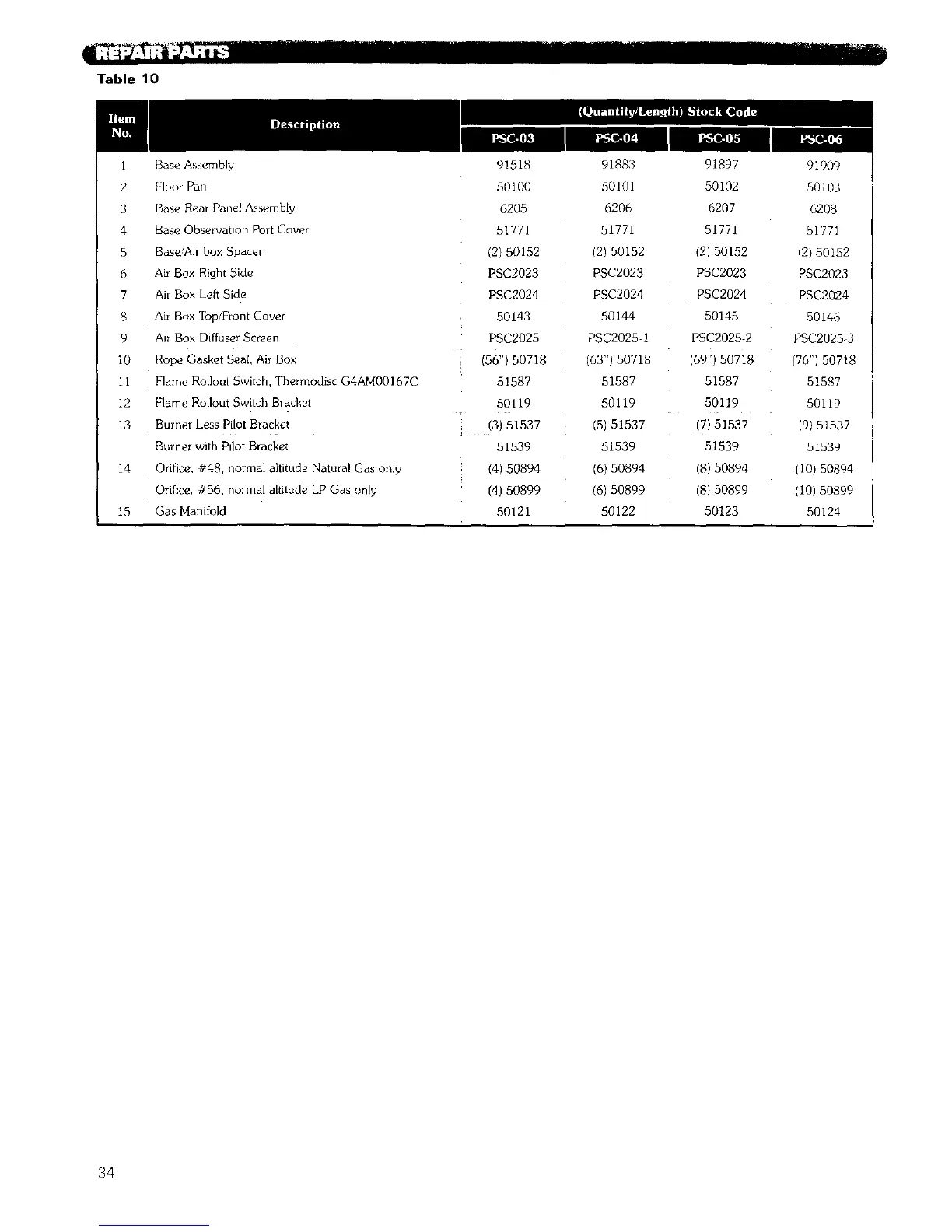 14 Orifice, #48, normal altitude Natural Gas only