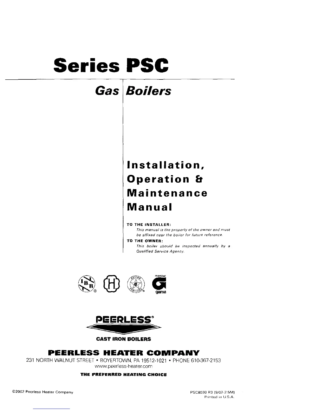@2002 Peerless Heater Company PSC8030 R3 (9/02 25M)