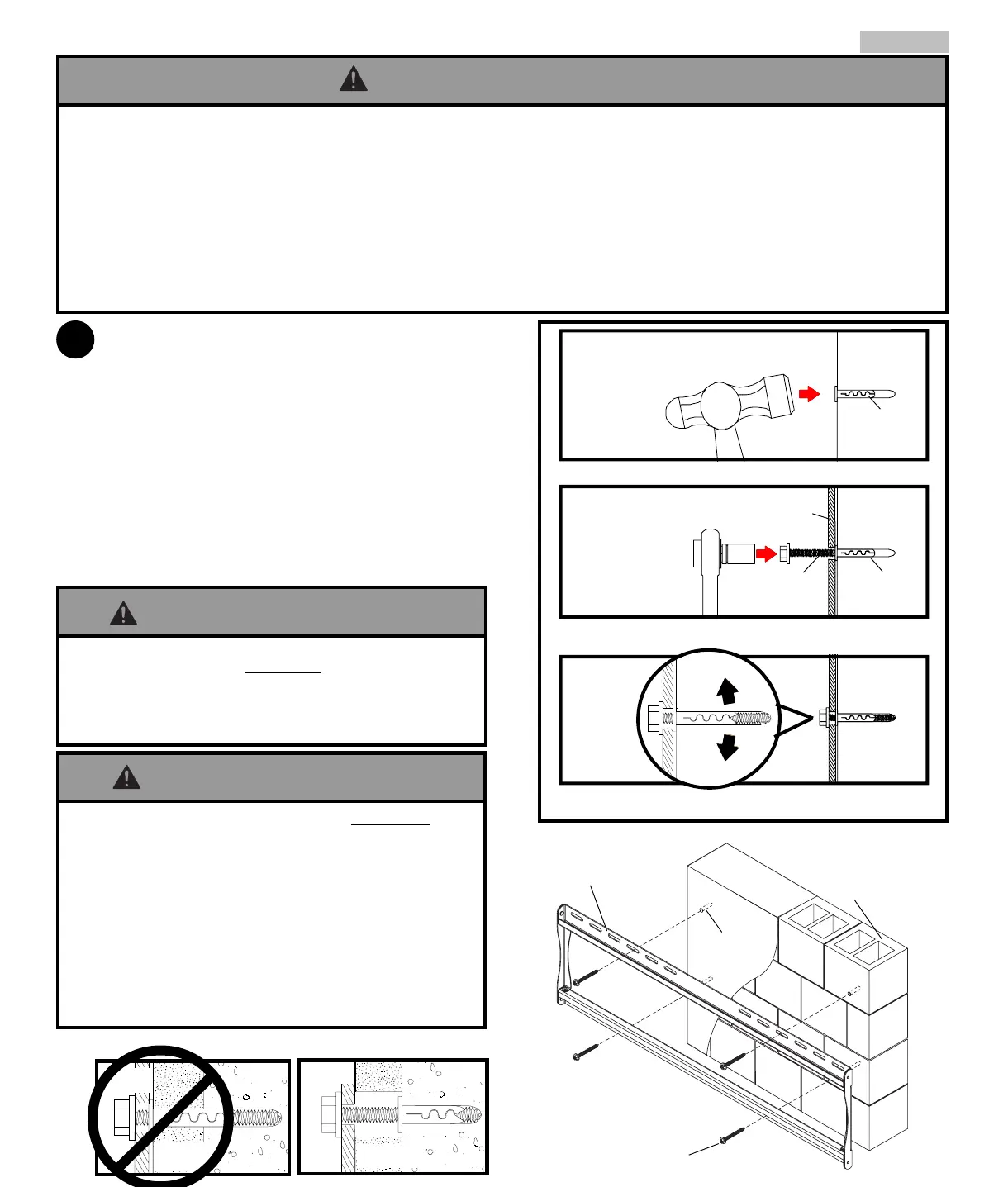 joints de mortier ! Veillez à effectuer le montage dans une partie pleine du bloc, généralement à au moins 2,5 cm (1 po) du