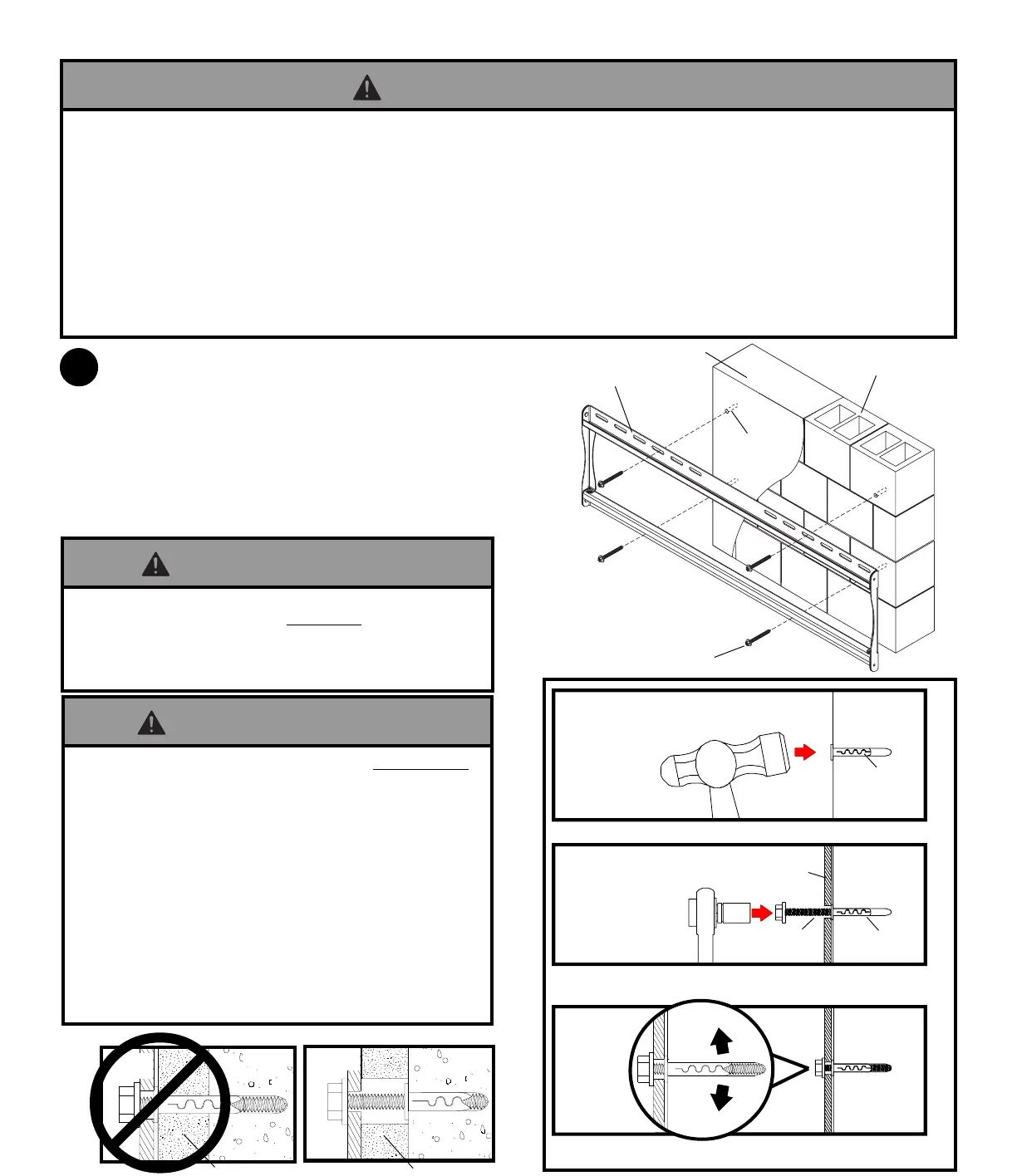 creto. ¡No taladre en juntas de argamasa! Asegúrese de hacer la instalación en la parte sólida del bloque, por lo