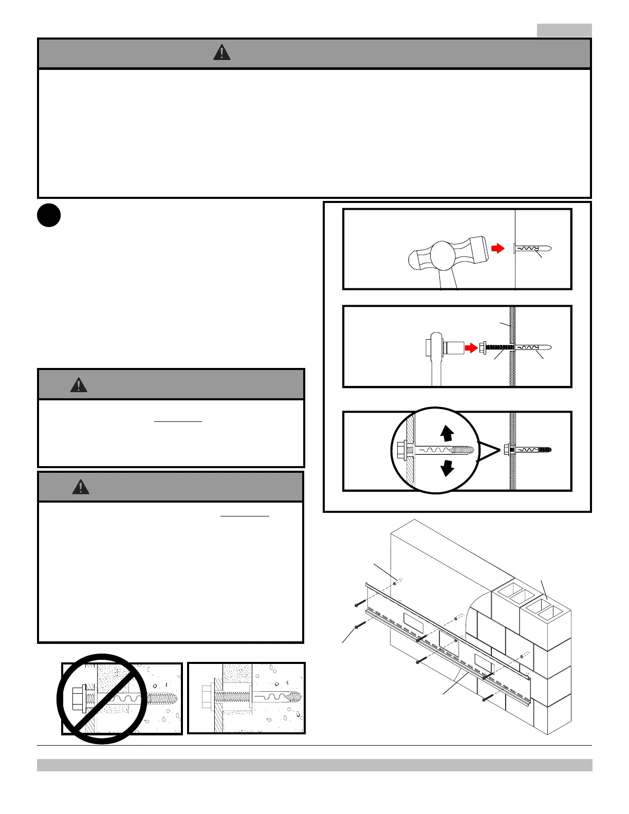 joints de mortier ! Veillez à effectuer le montage dans une partie pleine du bloc, généralement à au moins 2,5 cm (1 po) du