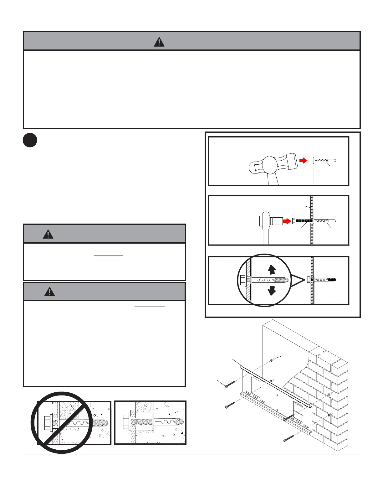 joints de mortier ! Veillez à effectuer le montage dans une partie pleine du bloc, généralement à au moins 2,5 cm (1 po) du