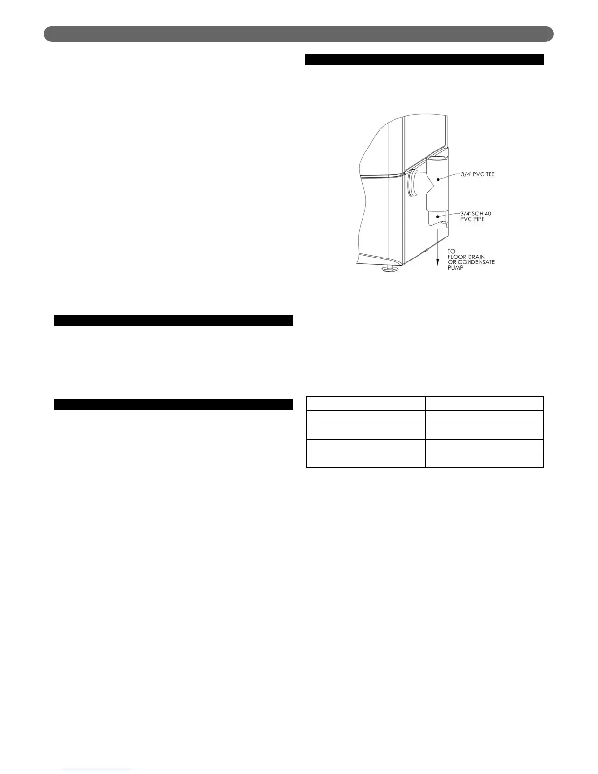 gravity drain, a condensate pump should be used.