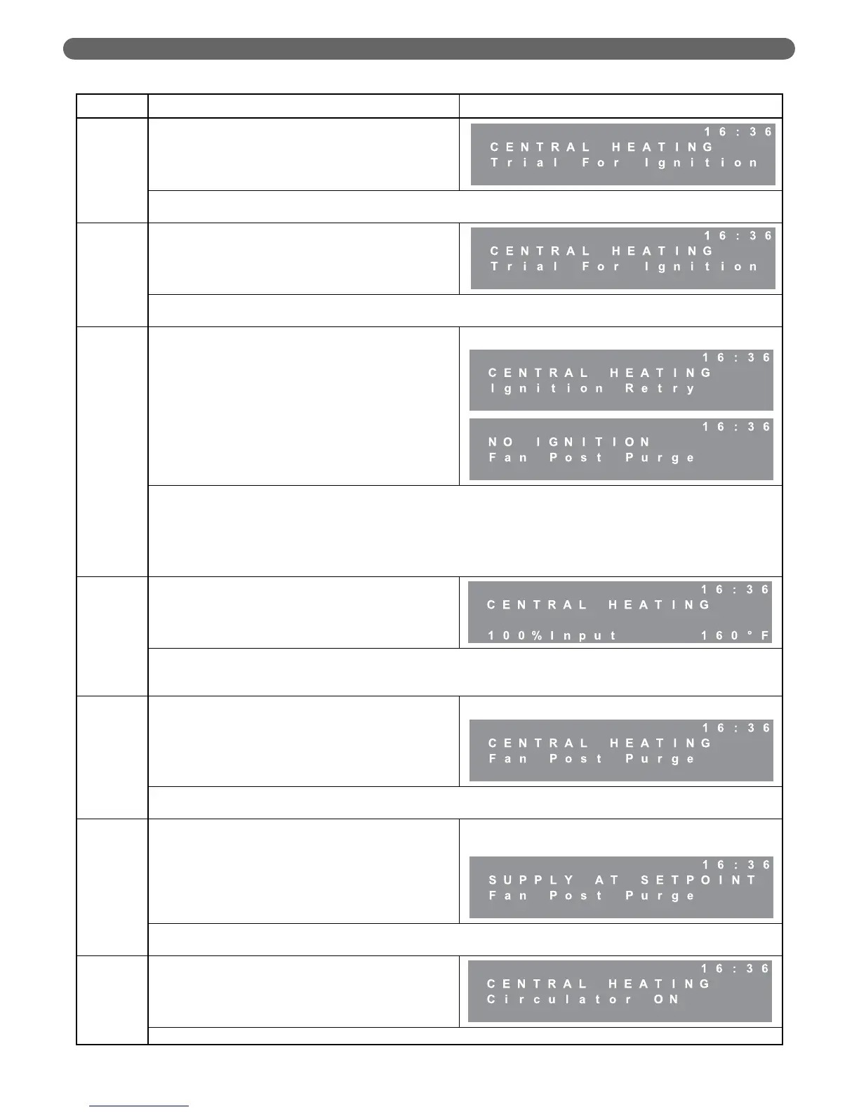 The following displays occur on ignition failure only.
