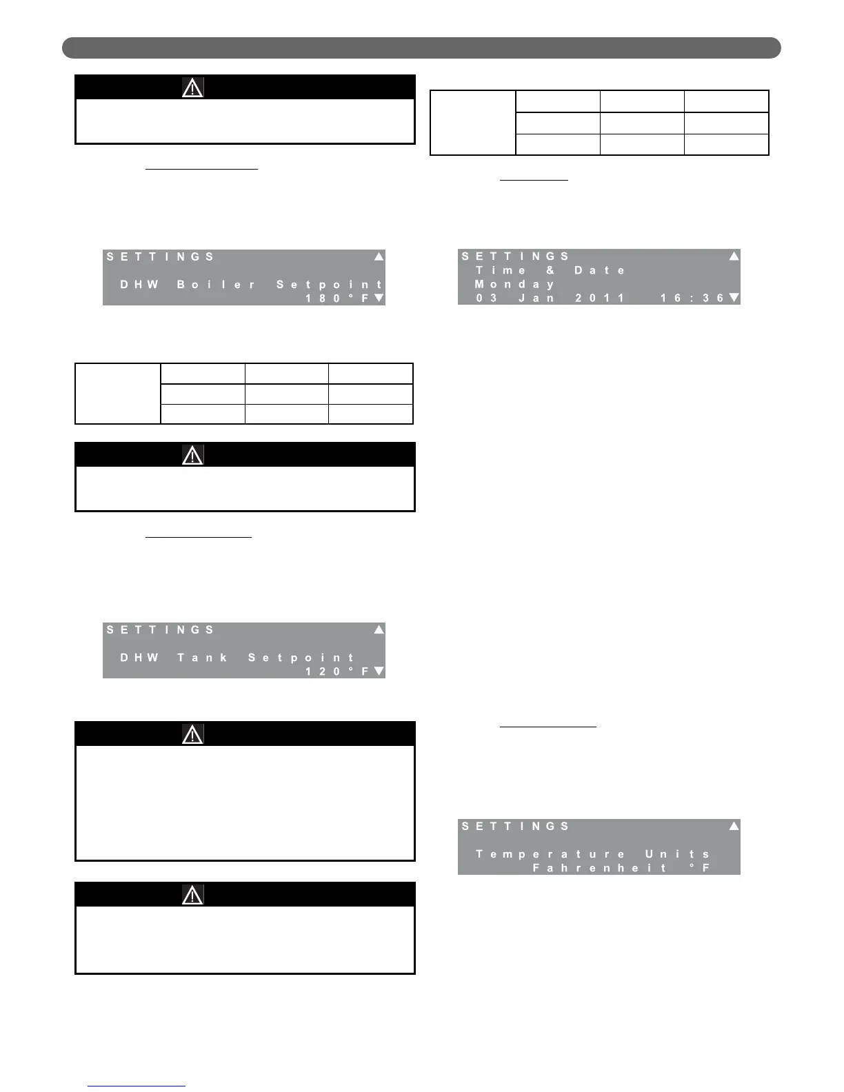 Table 8.7: DHW Boiler Setpoint Range & Defaults