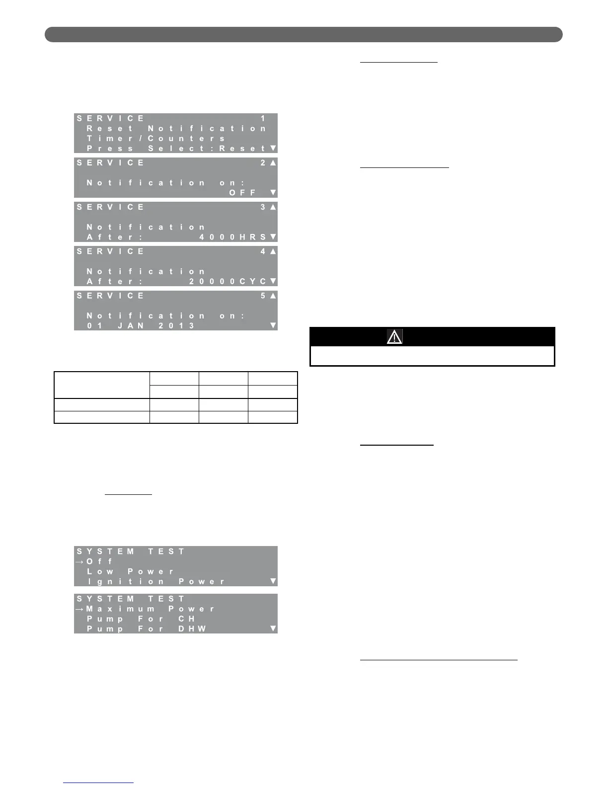 “Pump for DHW” from the System Test menu