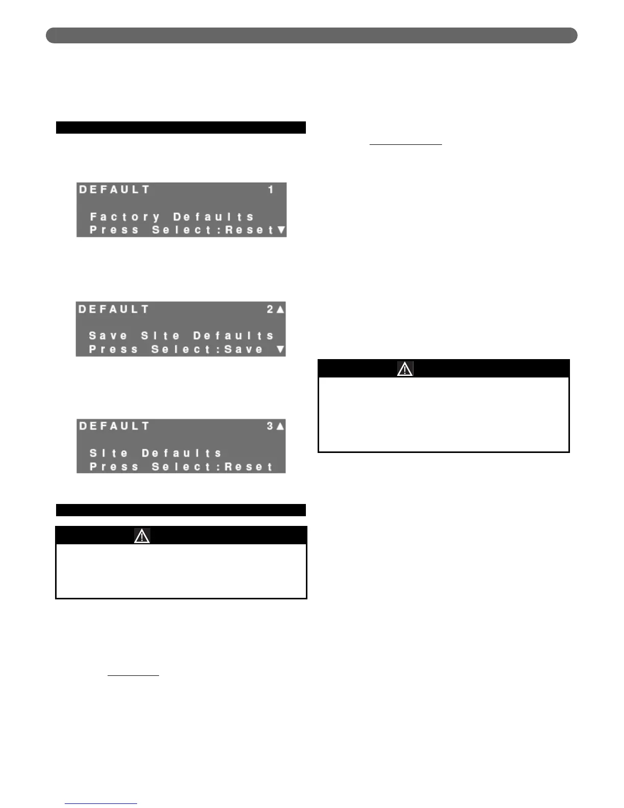 “Site Defaults,” press the “Select” key while in the
