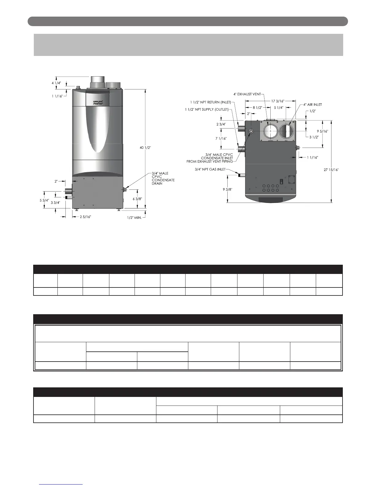 BOILER DIMENSIONS & RATINGS