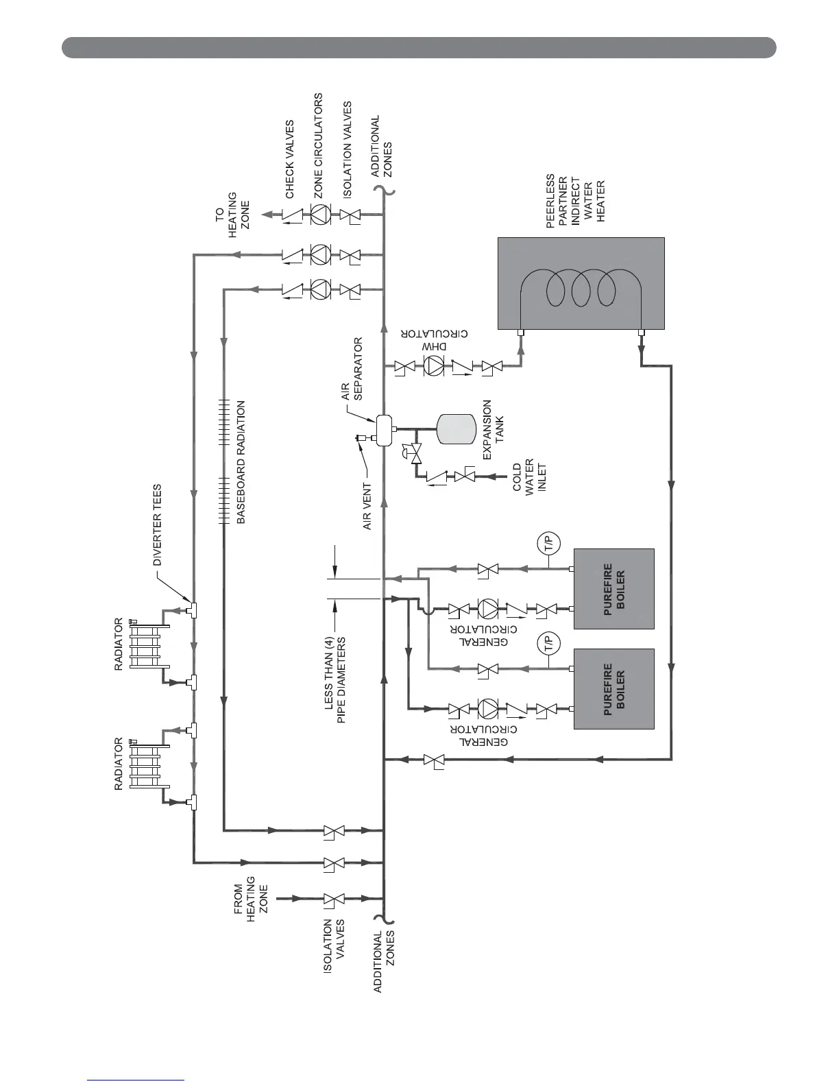 Figure 4.6: Two Boilers, Primary/Secondary with Four Zones (Zone Circulator)