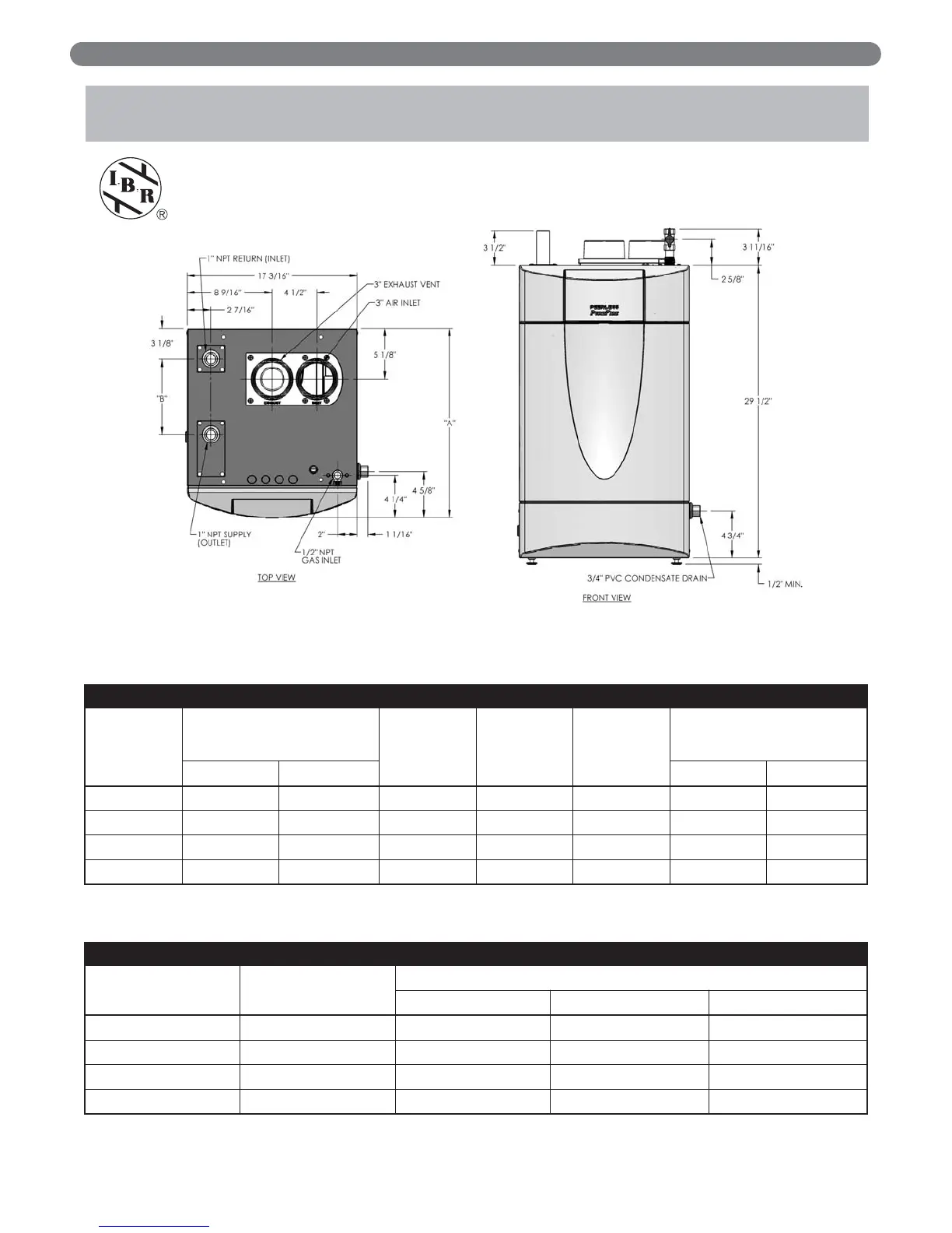 PUREFIRE™ BOILER RATINGS & DIMENSIONS