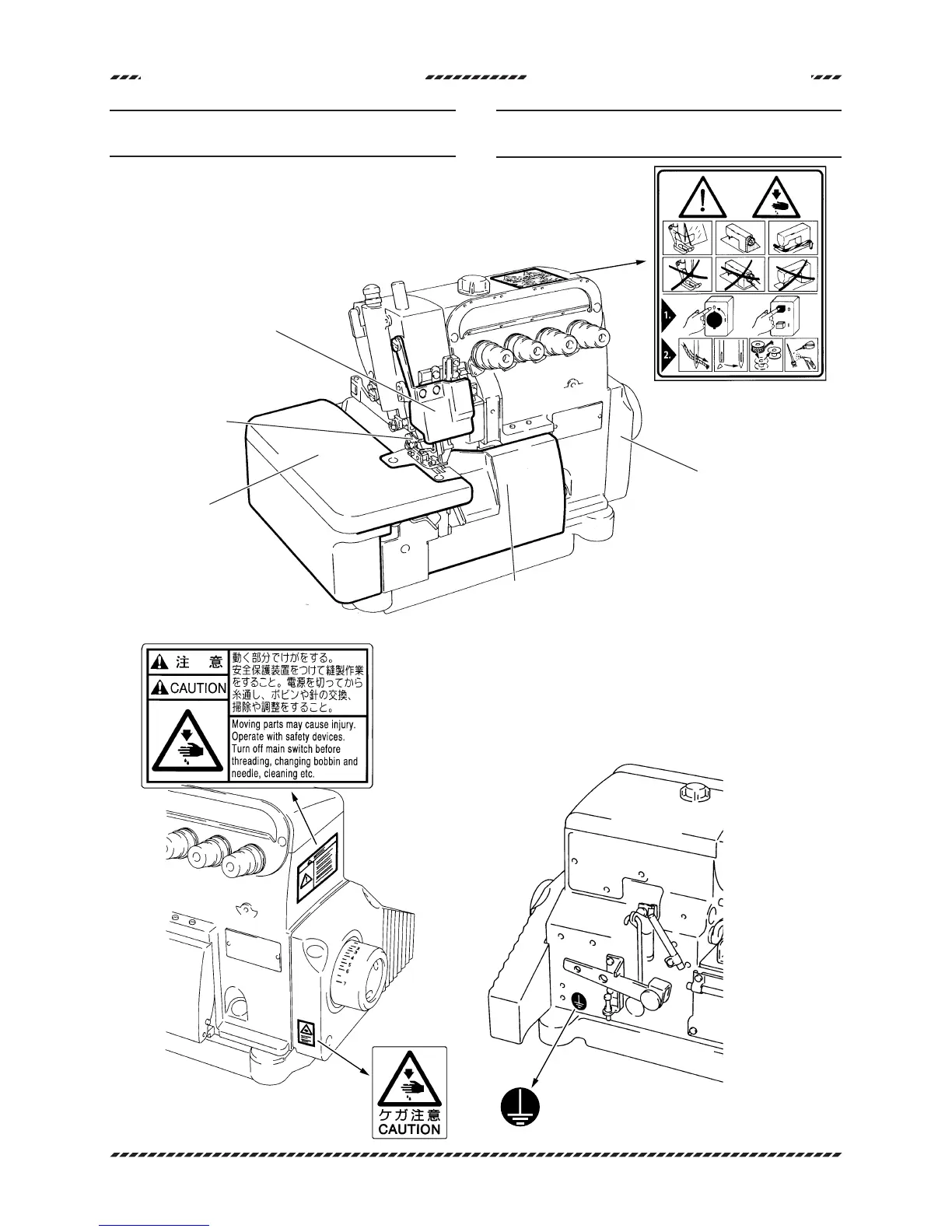 警告ラベルの貼り付け位置と安全保護装置