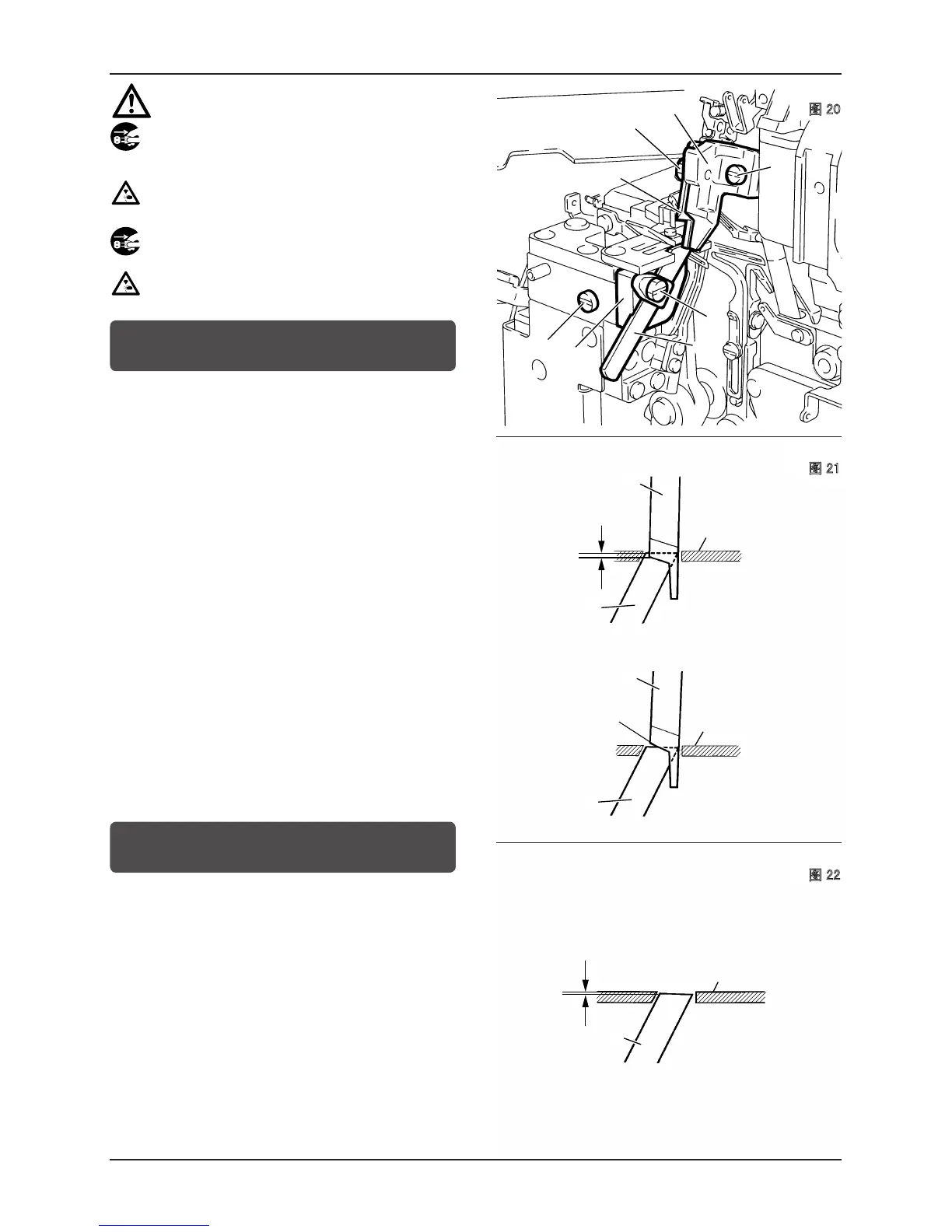 使下刀的刀刃与针板上面的间隙尺寸为 0 ~ 0.3 mm,拧