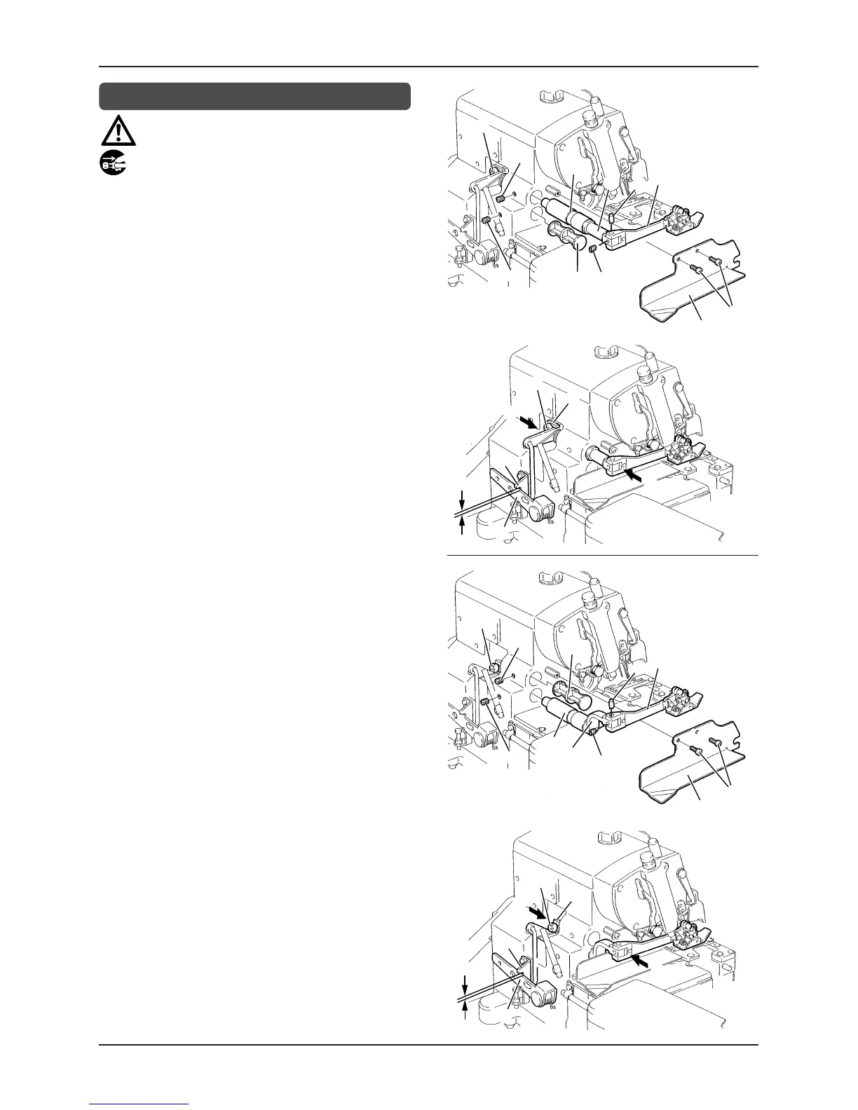 juego de 1 mm entre la palanca del alzaprensatelas