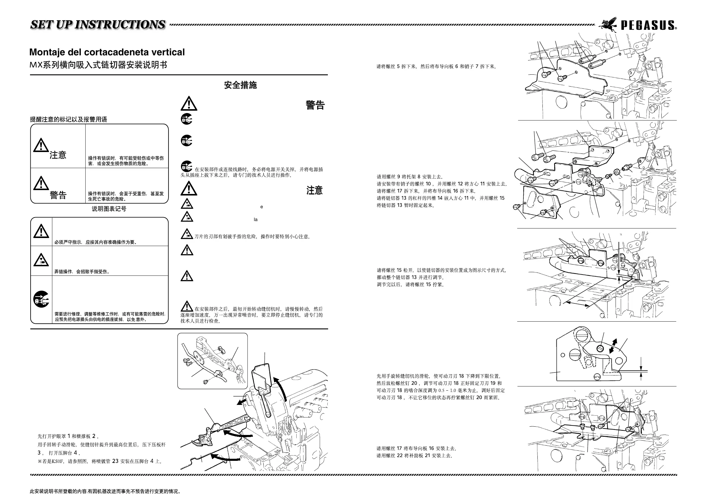 Montaje del cortacadeneta vertical en vacío de la serie MX