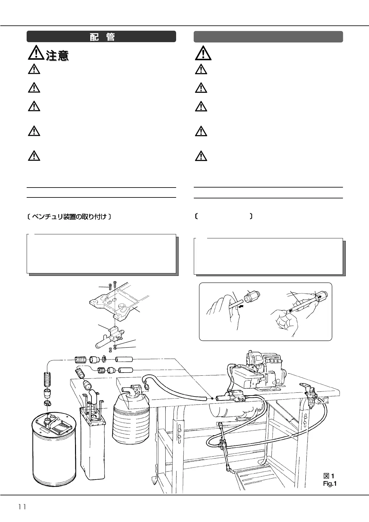 配管を行う時は、必ずミシンの電源及びエアーコンプレッサ
