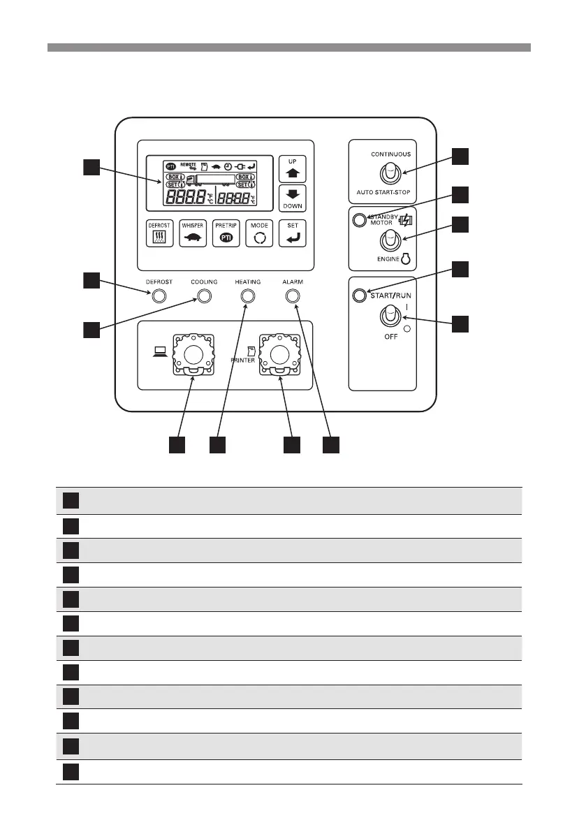 Run indicator lamp (Green) This lamp will light while the refrigeration unit is running.