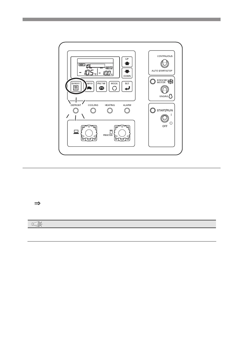 The "Defrost operation lamp" (Orange) lights and starts the defrost