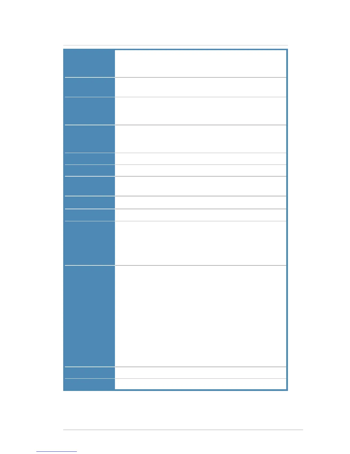 Specications summary
