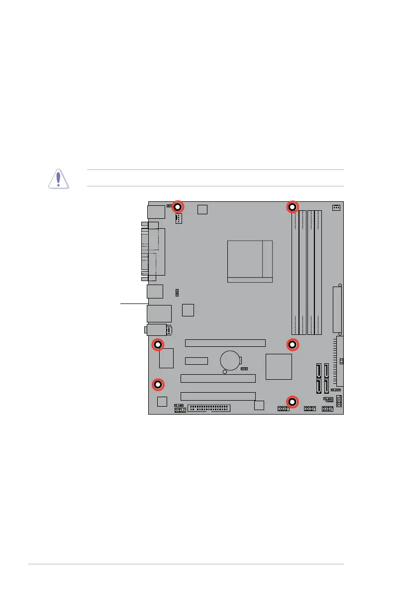 Do not overtighten the screws! Doing so can damage the motherboard.