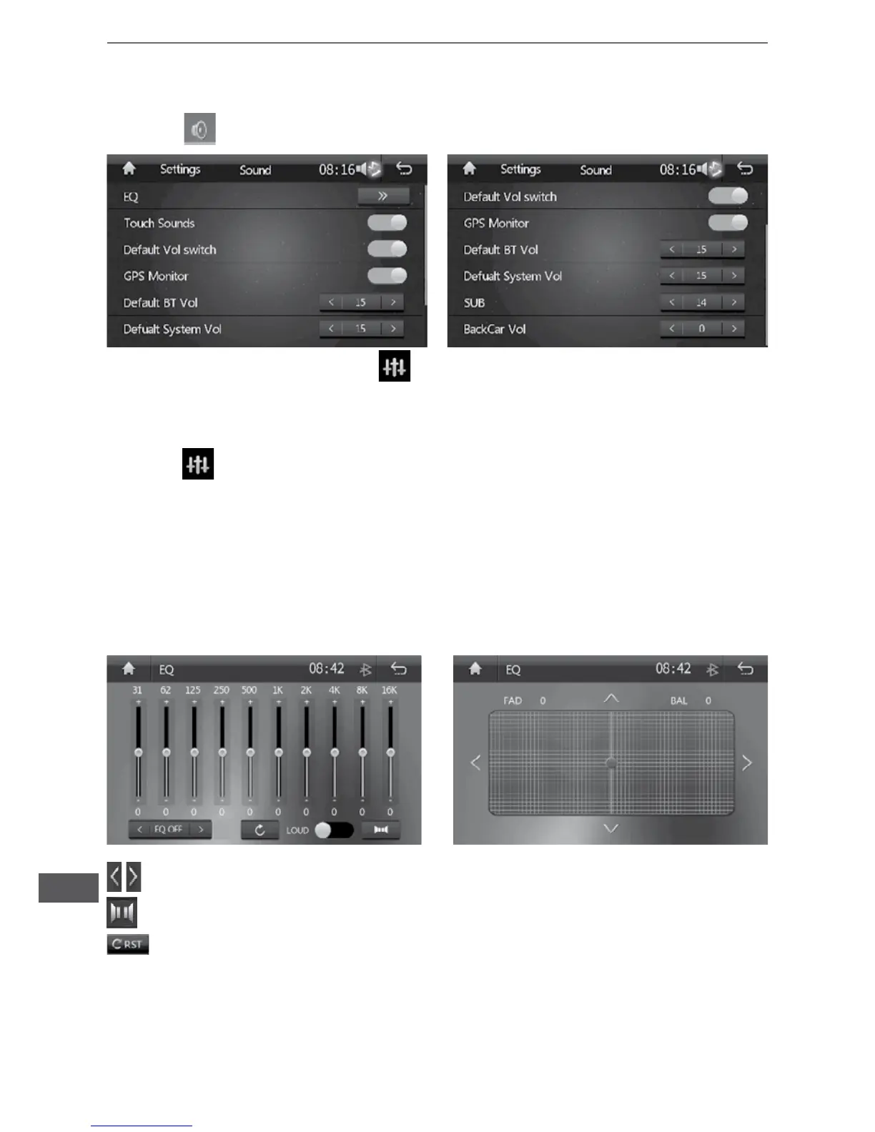 • To restore original EQ mode in sound effect menu, touch resetting button for recovery.