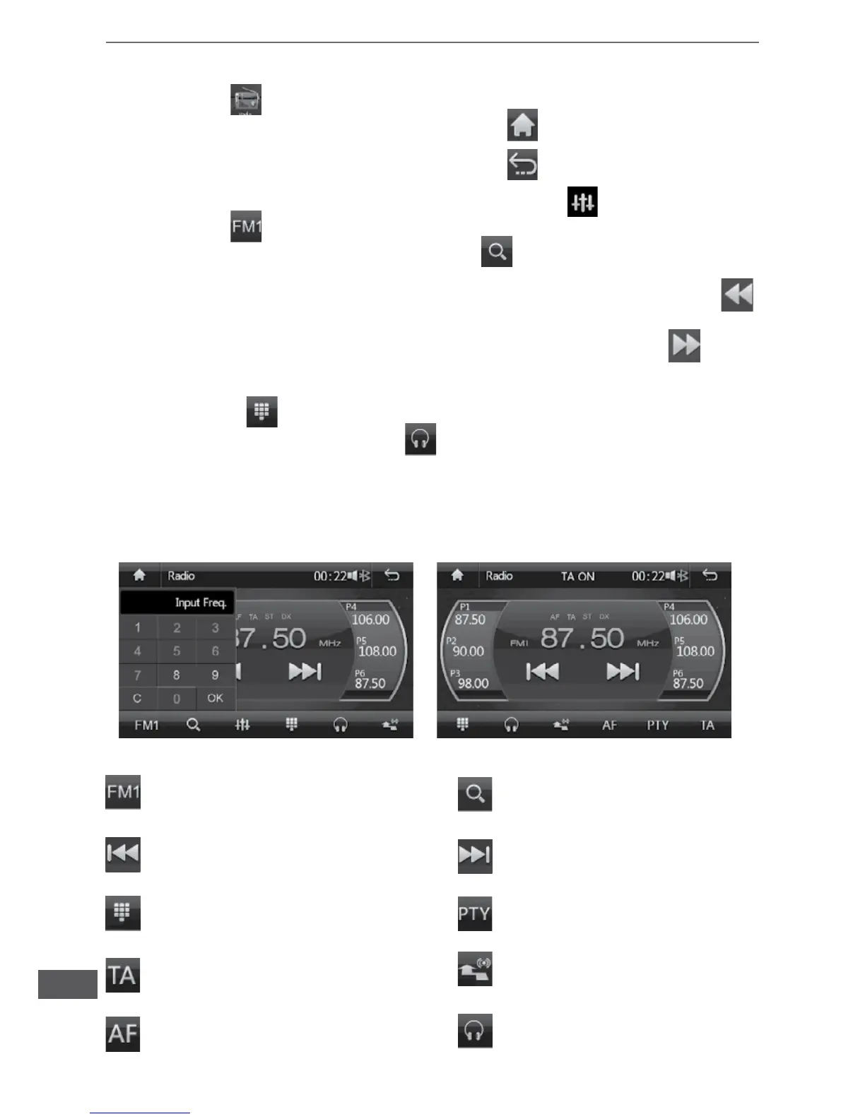 1. Apăsațitasta pentru a trece la meniul Radioului.