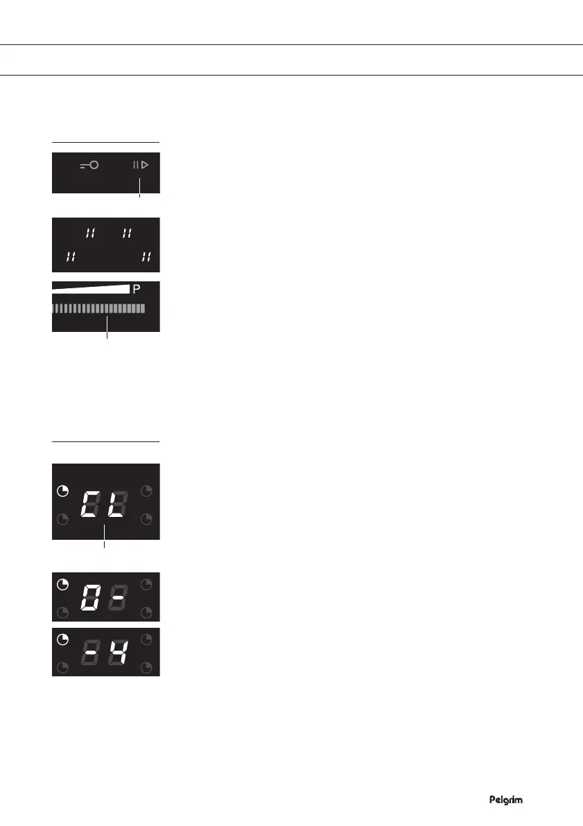 Auf den Displays der Kochzonen erscheint „| |“.
