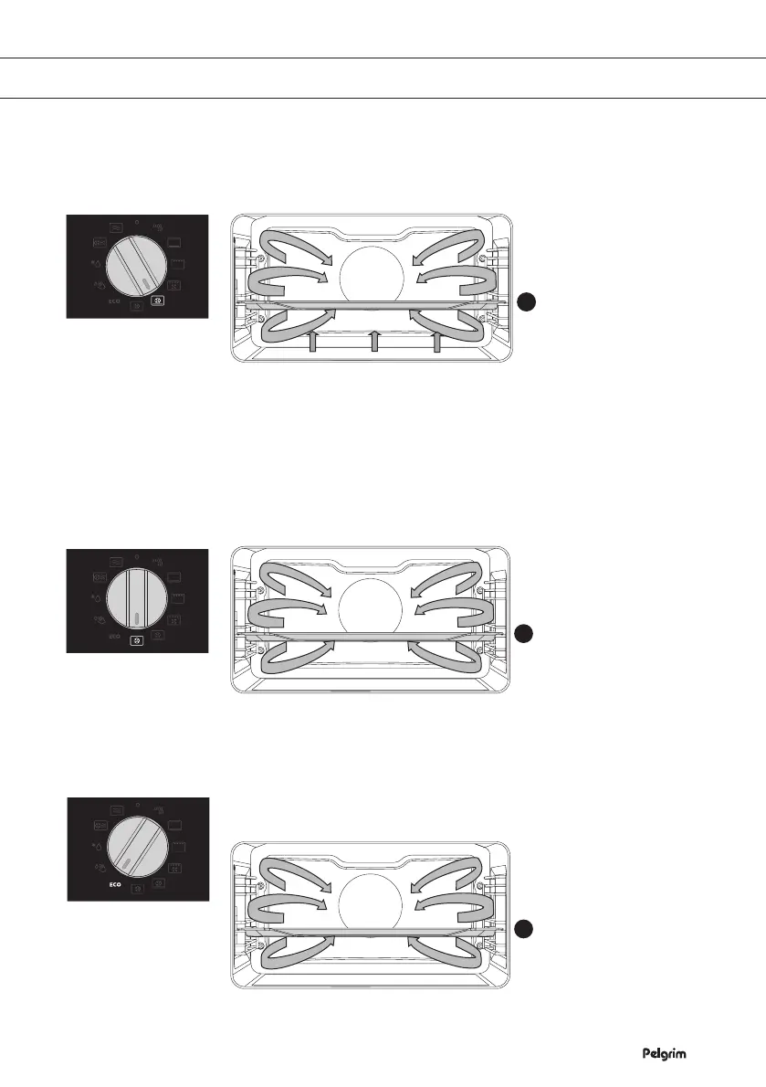 The dish is heated by hot air. This function is used to roast meat or to
