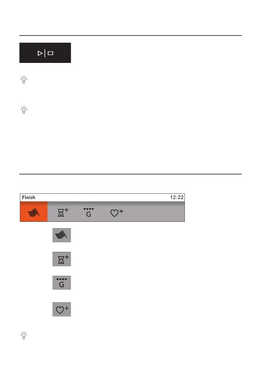 Select the icon and end the baking process. The display shows the