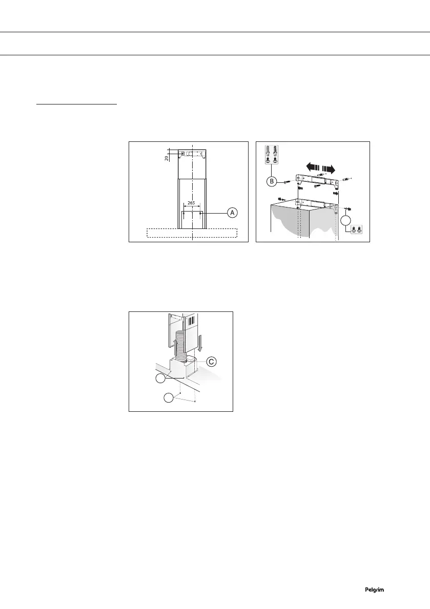 • Schroef de onderste koker aan de afzuigkap met de schroeven (D).