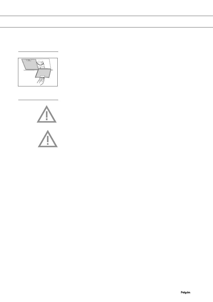 Fettfilter nach vorne ziehen und dann von vorne nach unten kippen.
