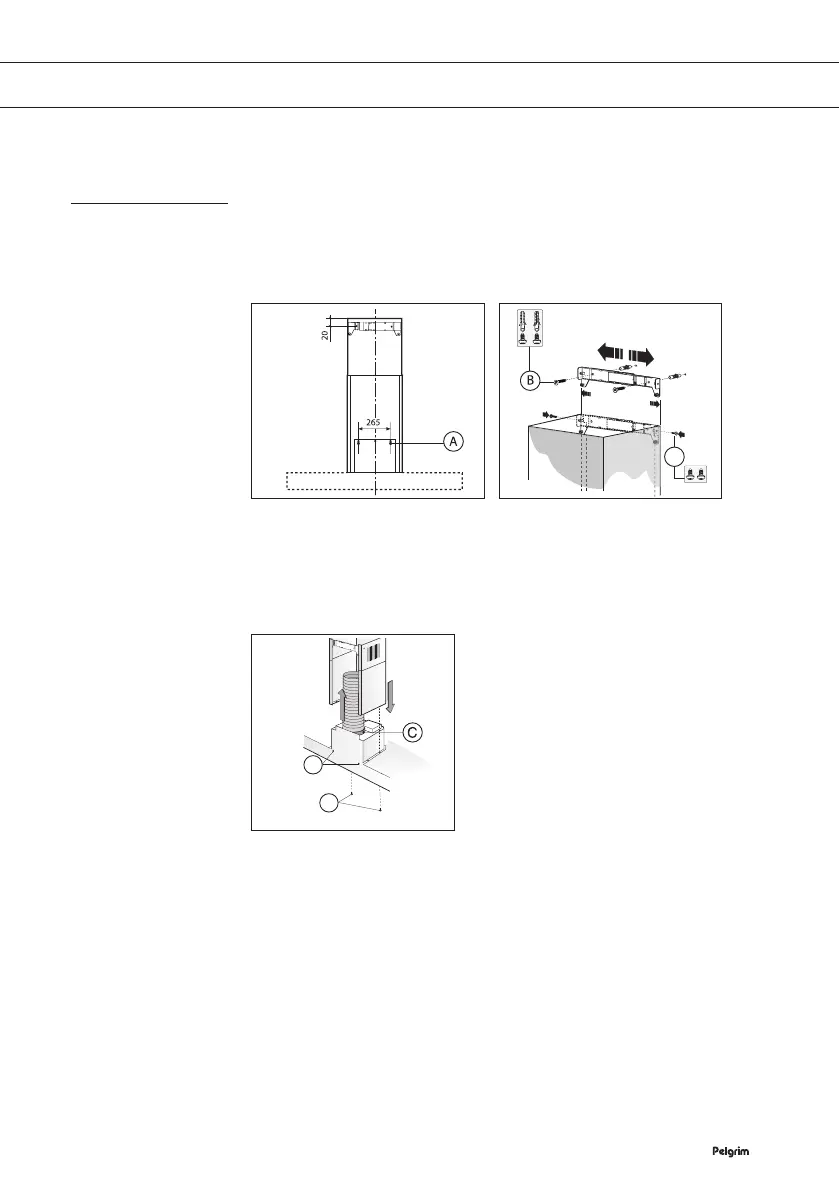 • Setzen Sie das Abluftrohr in das Ansatzstück (C) und anschließend