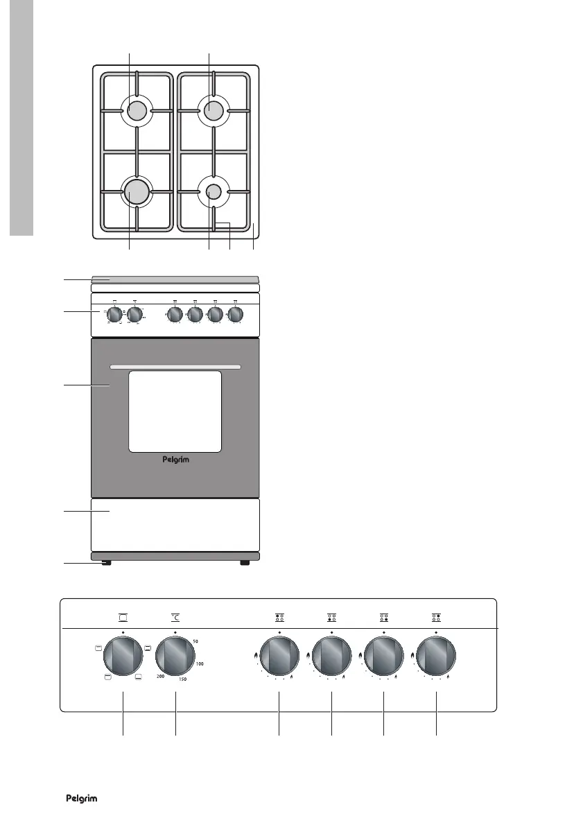 8 – control knob for oven temperature