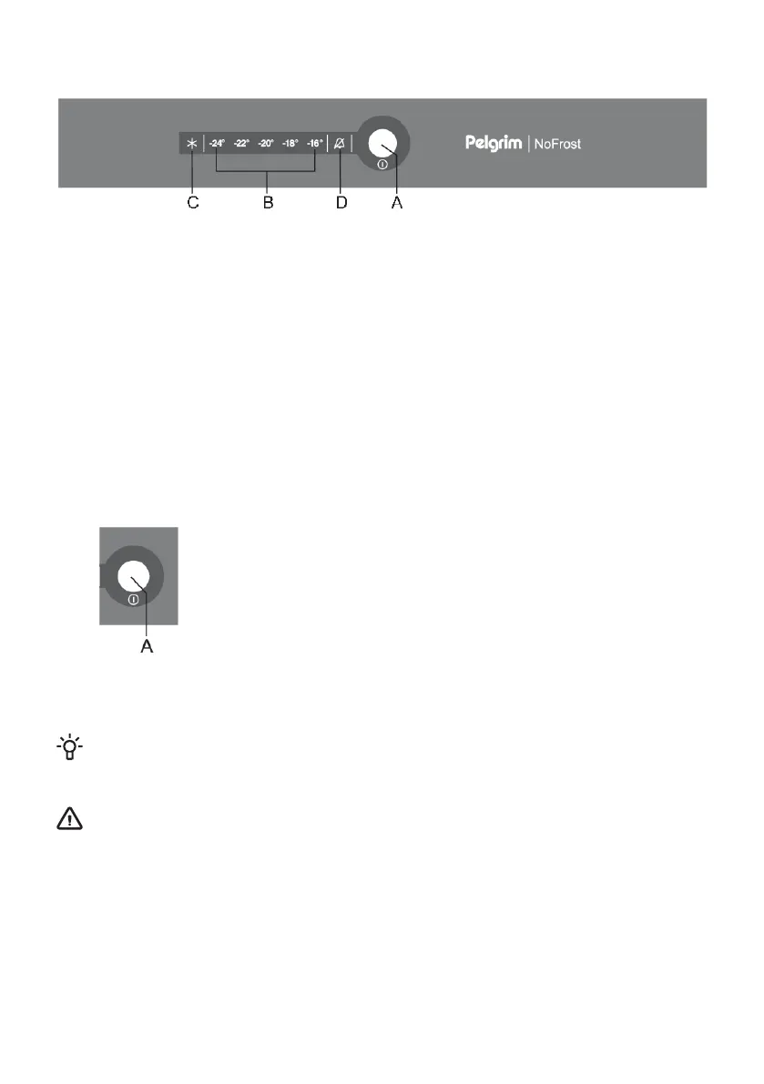 Switching the appliance on: Press the A key and hold it for 3 seconds.
