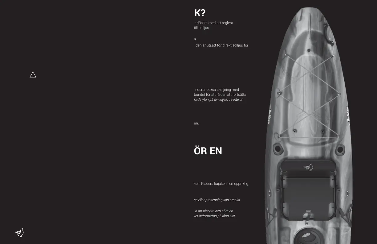 / Placera din kajak på en plan yta. Avstå från att placera den på en sågbock över en längre period. Avstå från att placera den nära en