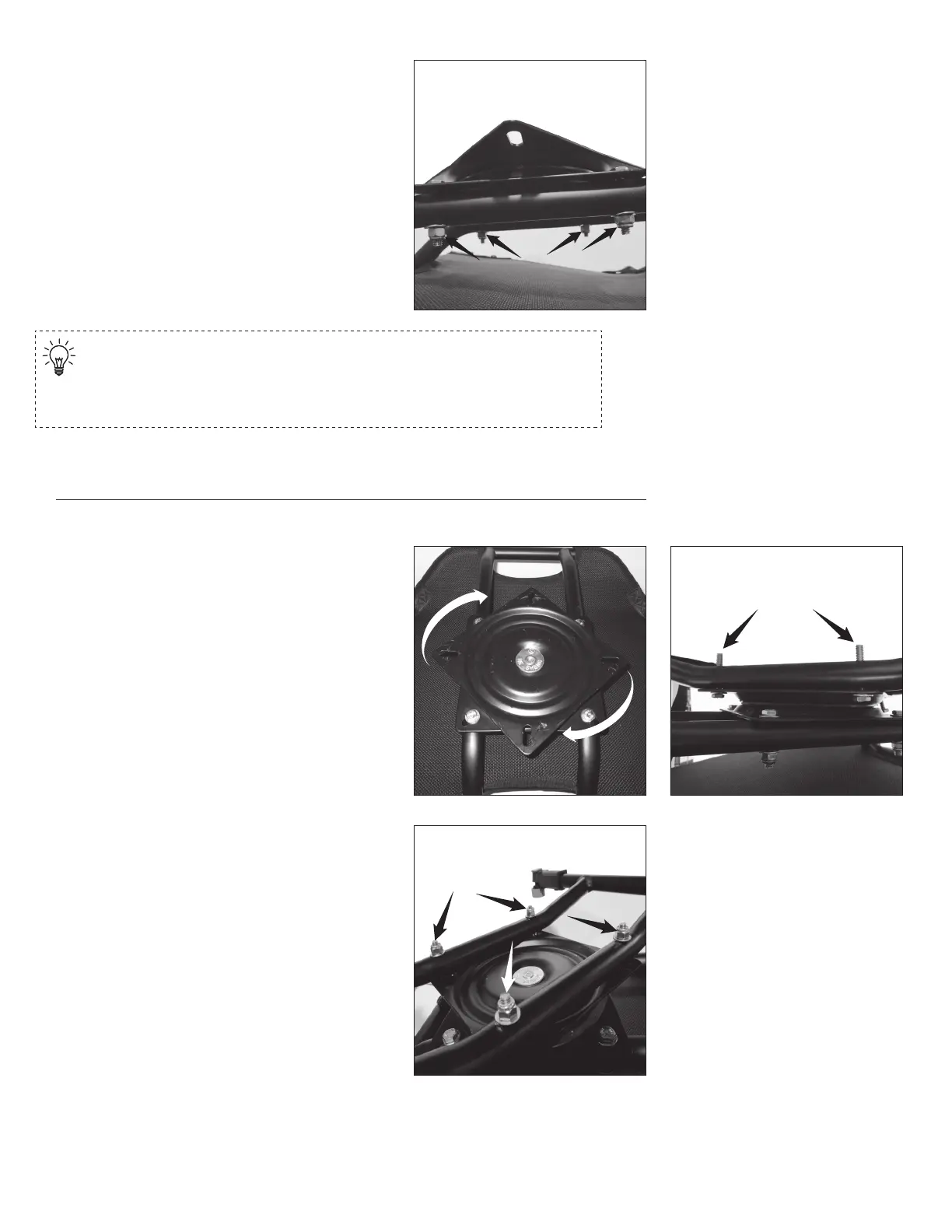 Installing the base to the swivel plate / Installer la base tubulaire au pivot du siège