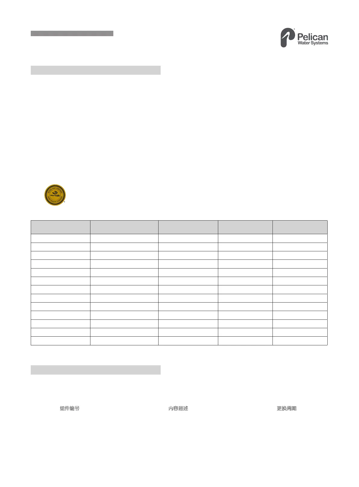 本系统经过性能数据表 NSF / ANSI 标准 58 对下列物质进行过滤程度的测试。根据 NSF / ANSI 58 检测结果,本系统过滤的水