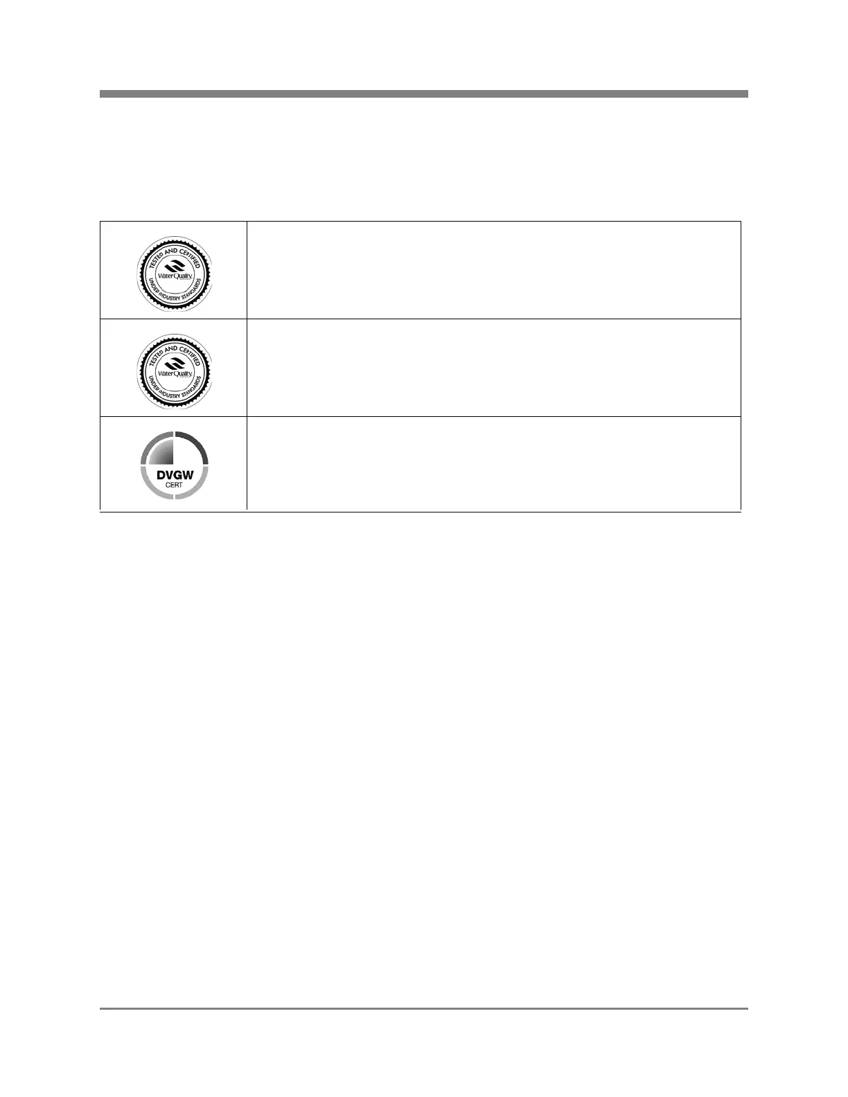 ANSI61 for material safety and tested according to NSF/ANSI 42 for structural integrity