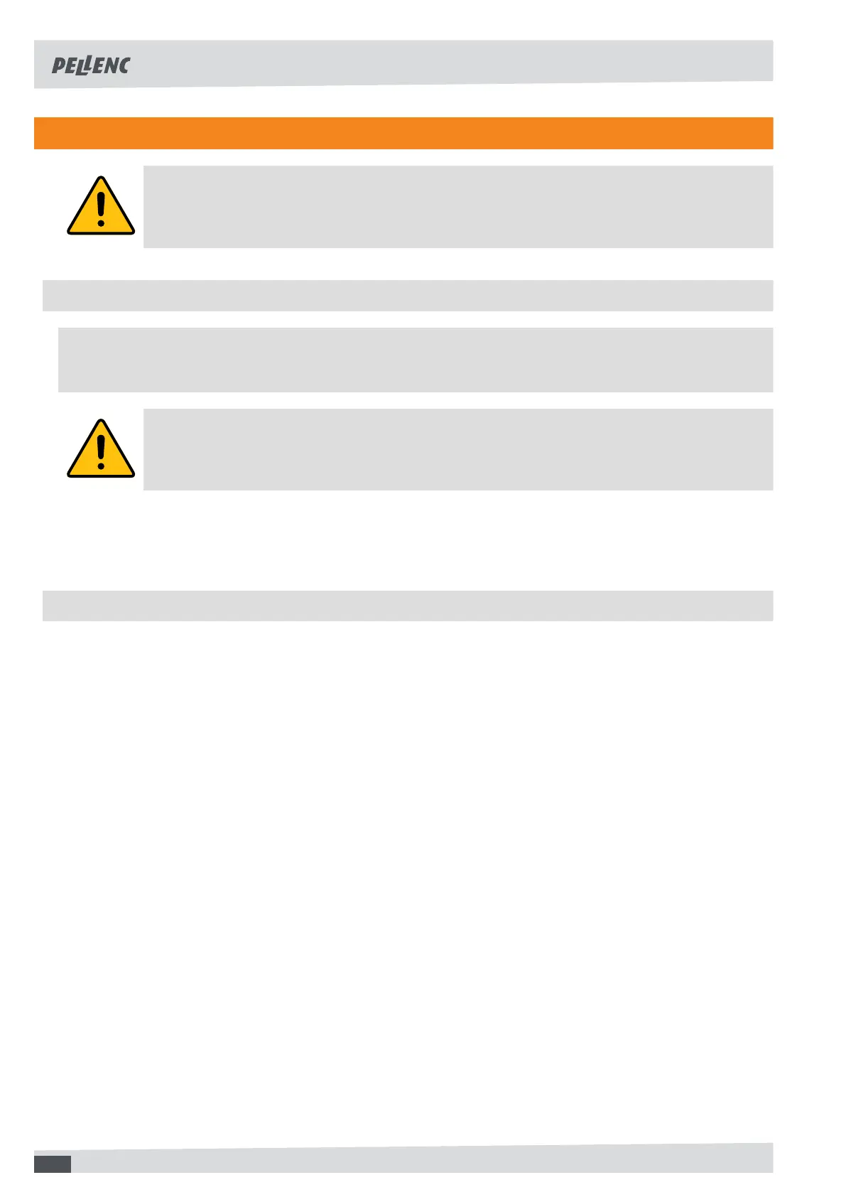 14. Use of a battery other than that provided by Pellenc SA is dangerous (risk of serious injury). If a different battery