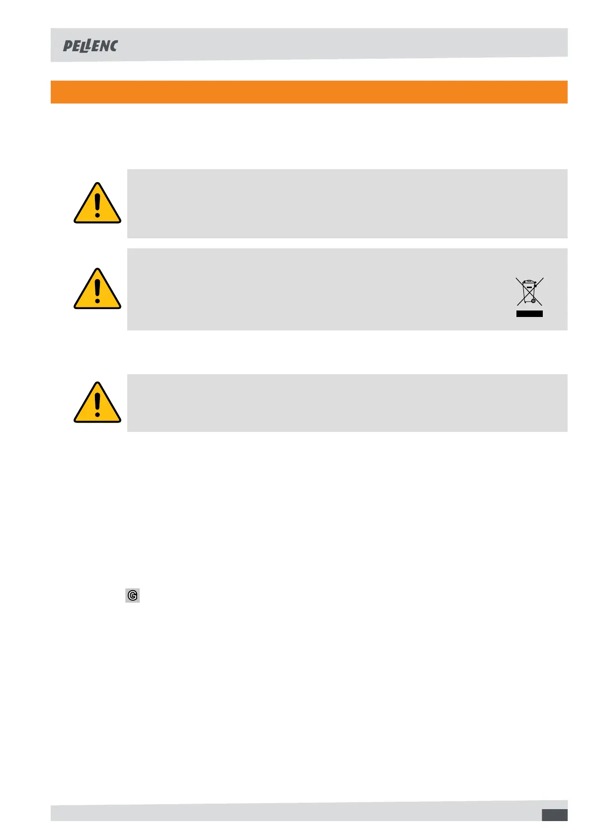 Thank you for purchasing your PELLENC battery 250. Properly used and maintained, this equipment will give you