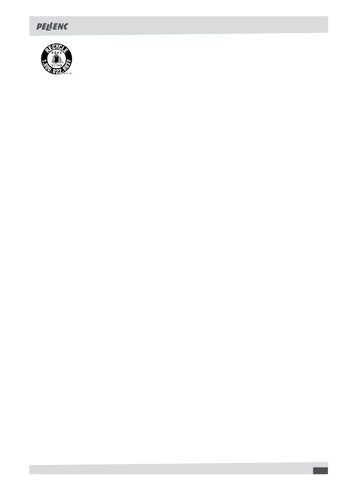 The RBRC™ sticker (found on the packaging) indicates that PELLENC voluntarily participates
