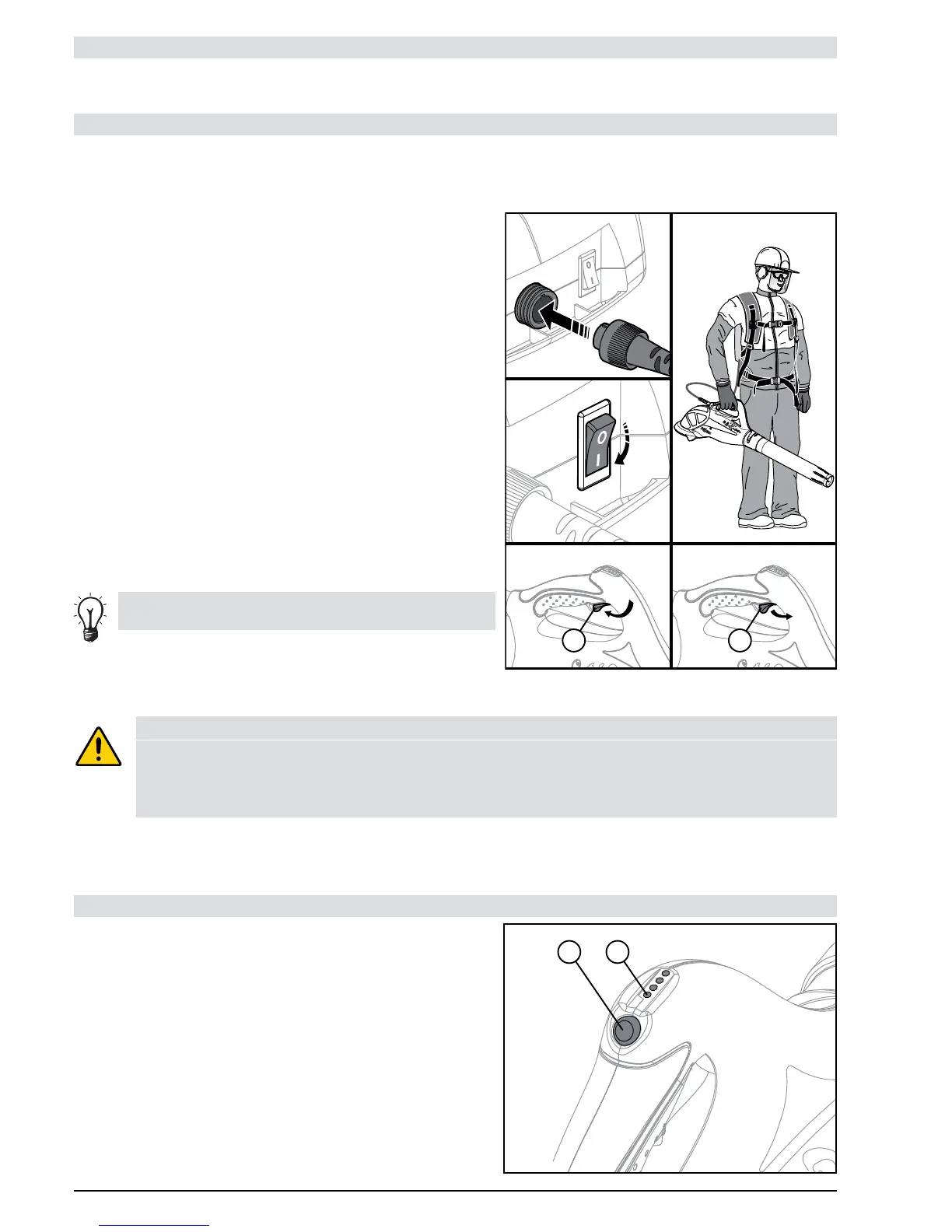 6– Release the trigger (1) to stop the blower.
