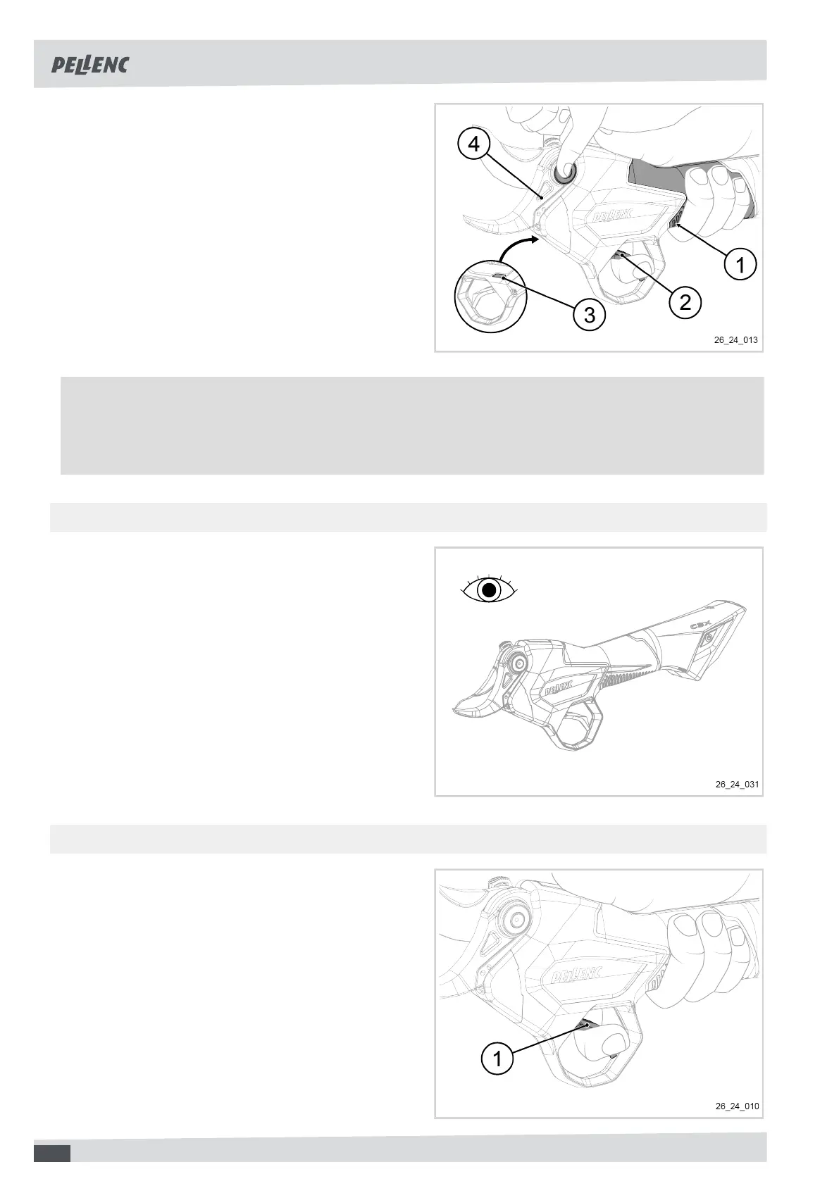 When the blade is held in the open position and the "Activ' Security" LED is lit red by the tool in the event of