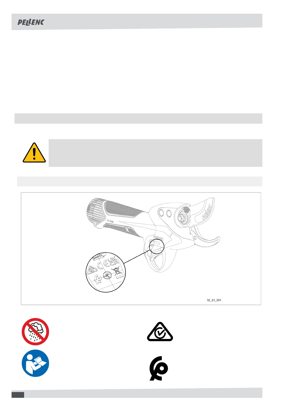 13. When using the tool at ground level, ensure that no persons or objects are in contact with the cutting device.