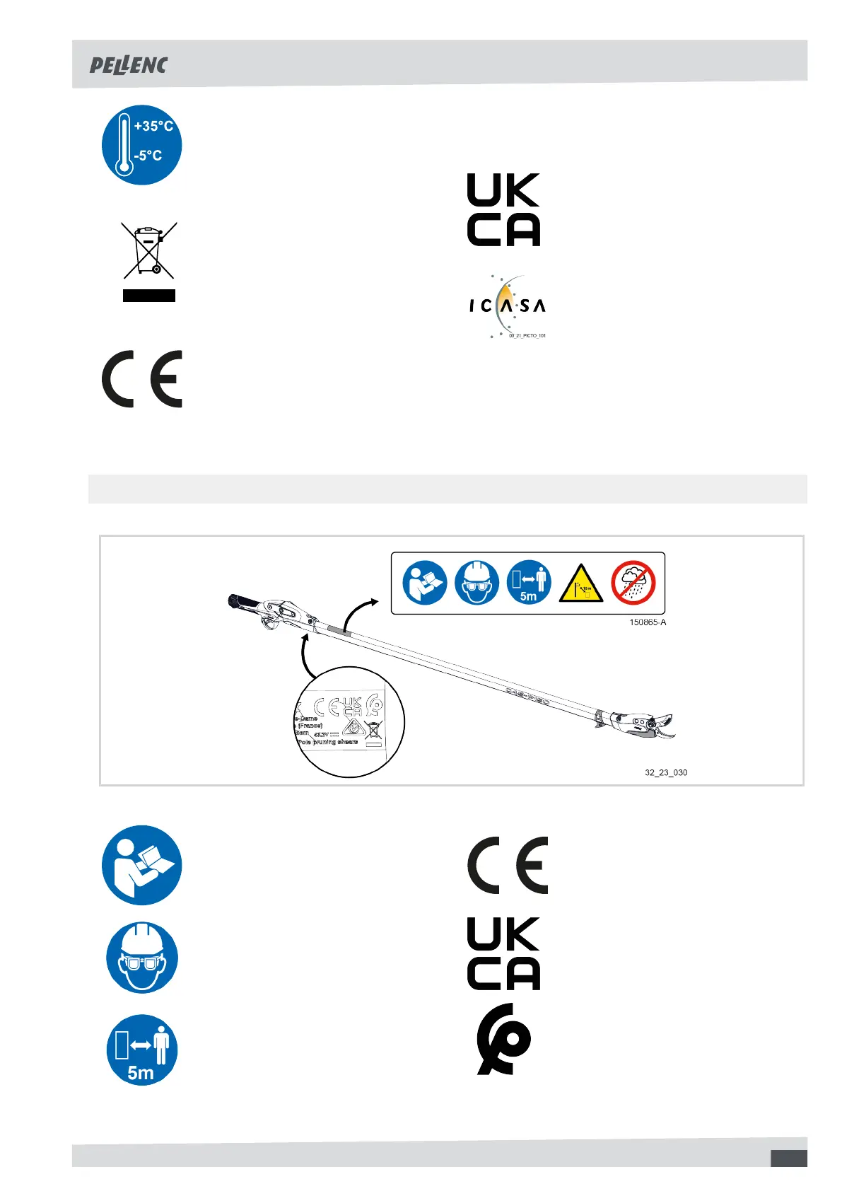 2.5.2. SAFETY SIGNS FOR THE C45 FITTED WITH A P150 OR P200 POLE