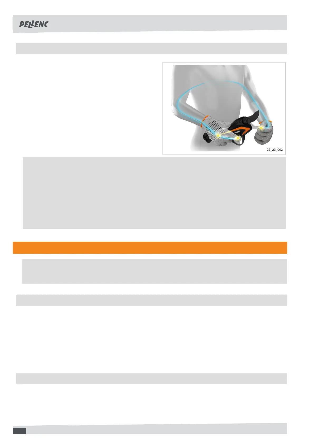 The use of conductive gloves PELLENC is recommended for optimal safety in very wet or extreme conditions.