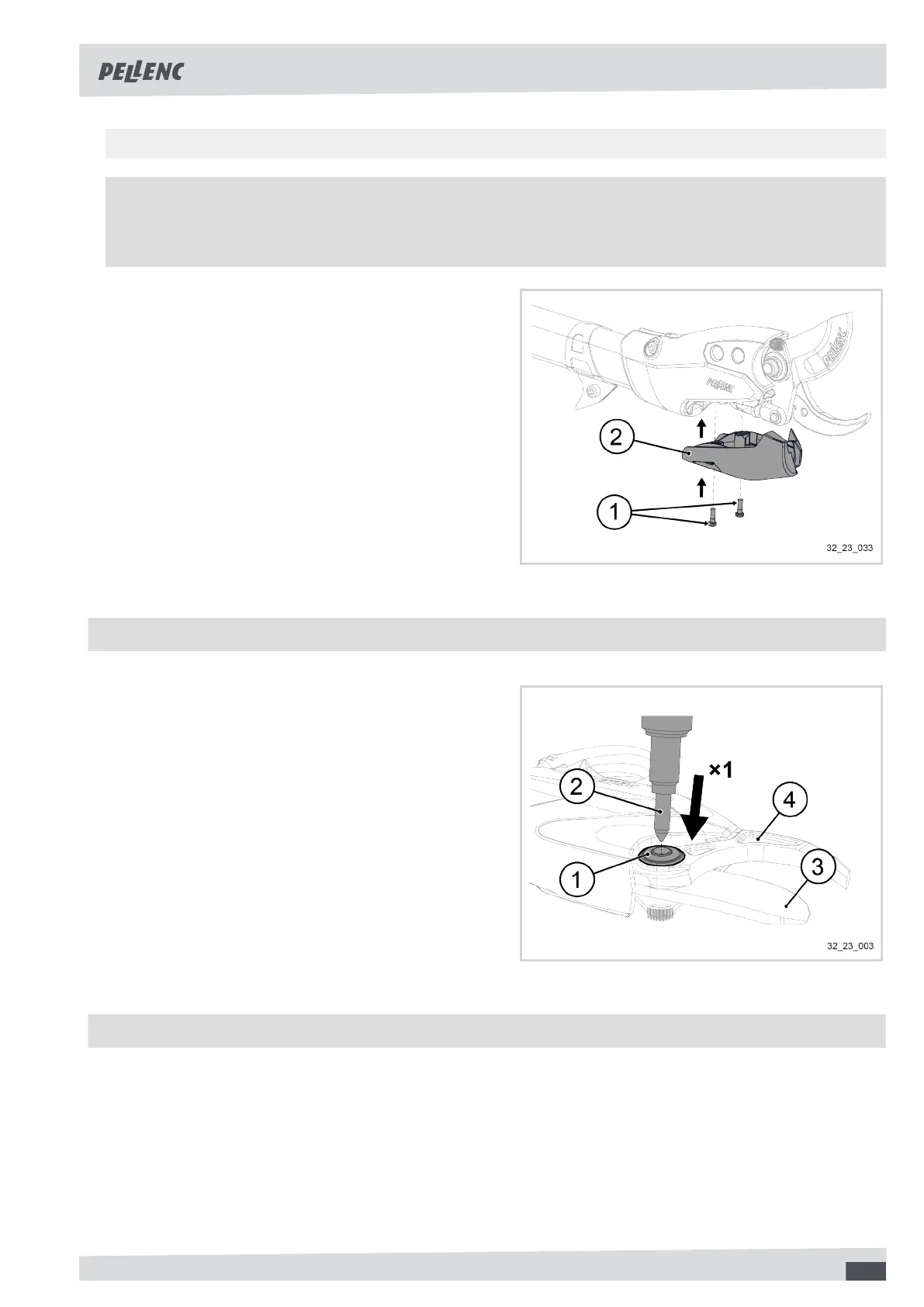To remove the blade, the pins and change the worn parts of the tool equipped with a P150 or P200 pole, see