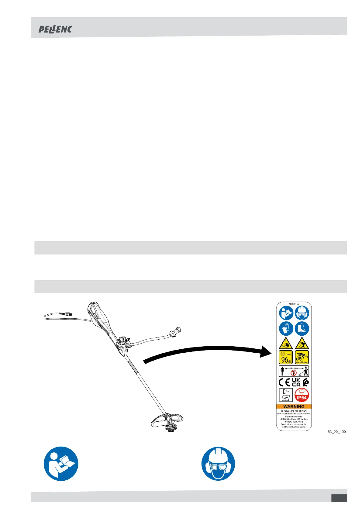• Only use nylon strimmer wire recommended by PELLENC with a max. diameter of 3 mm.