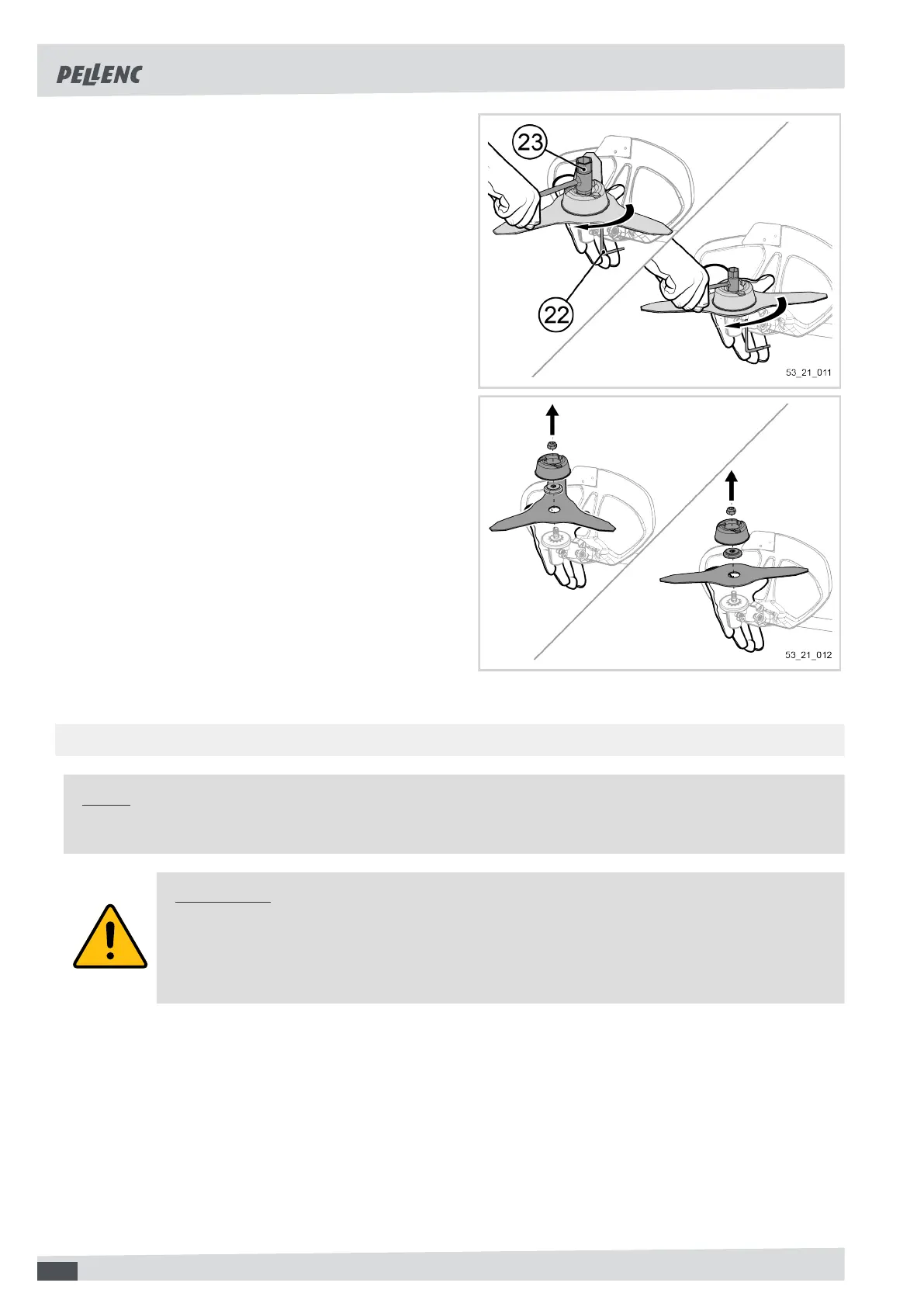 4.4.2. FITTING/DISMOUNTING THE MULCHING BLADE ON THE TOOL