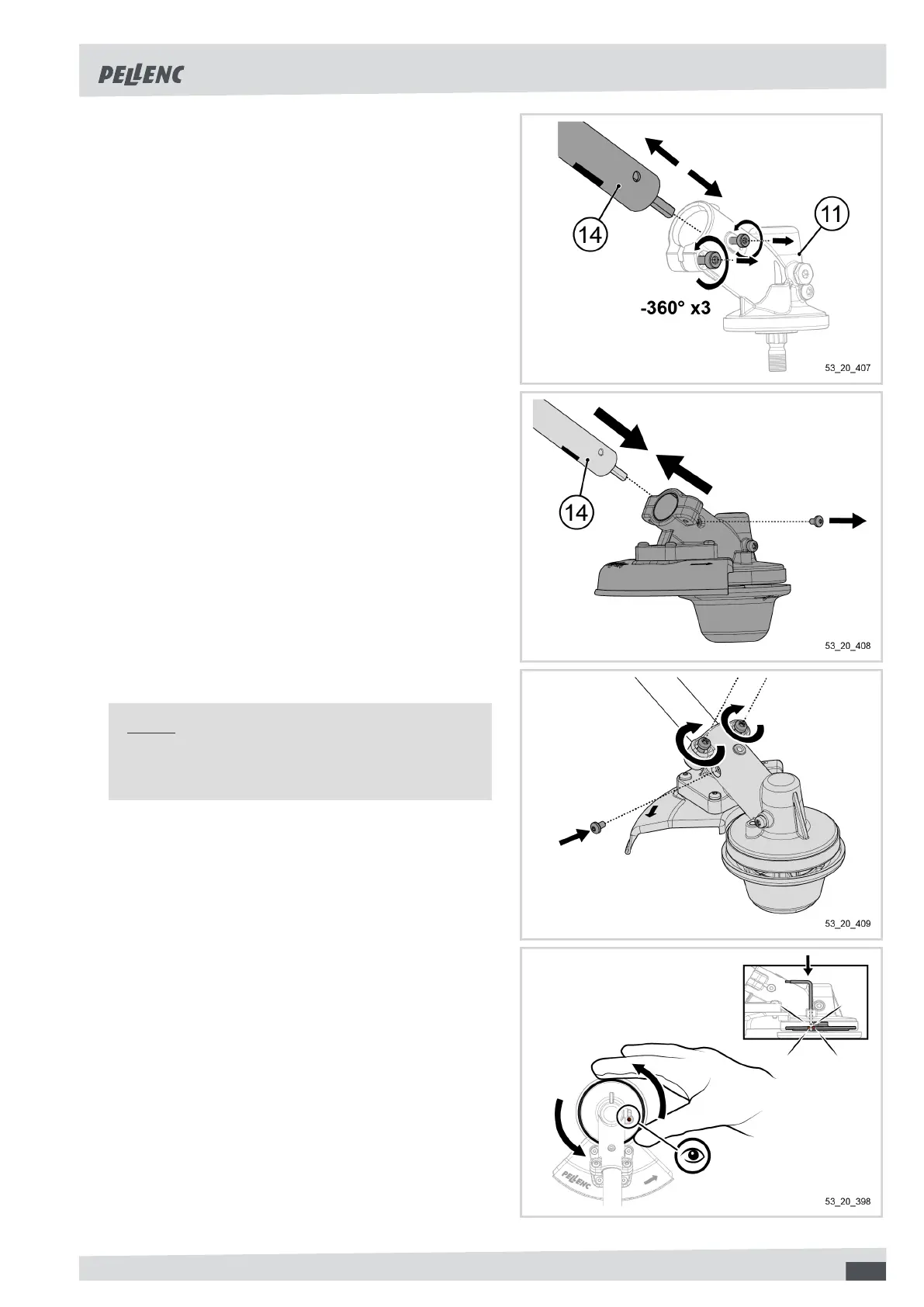 5. Insert the transmission shaft (14) into the angle gear.