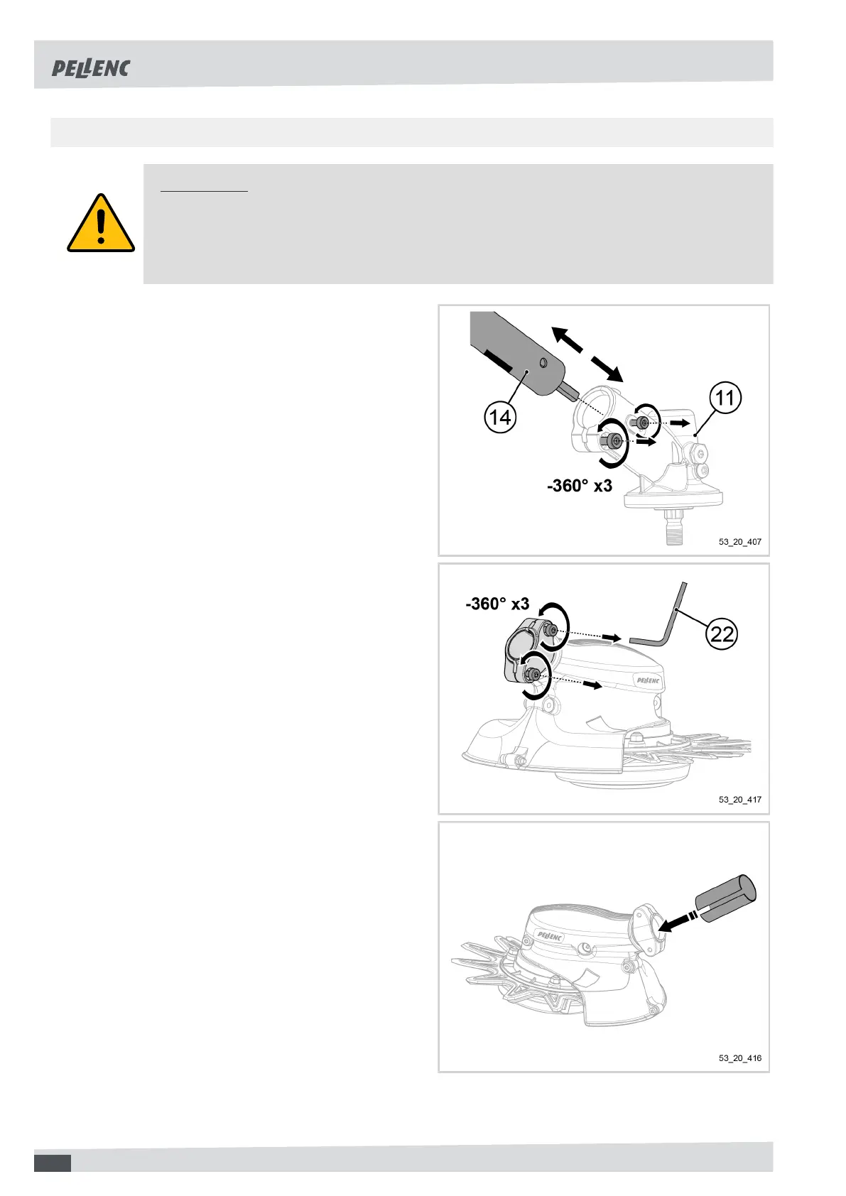 Before any intervention on the tool, stop the machine completely and disconnect the battery. To